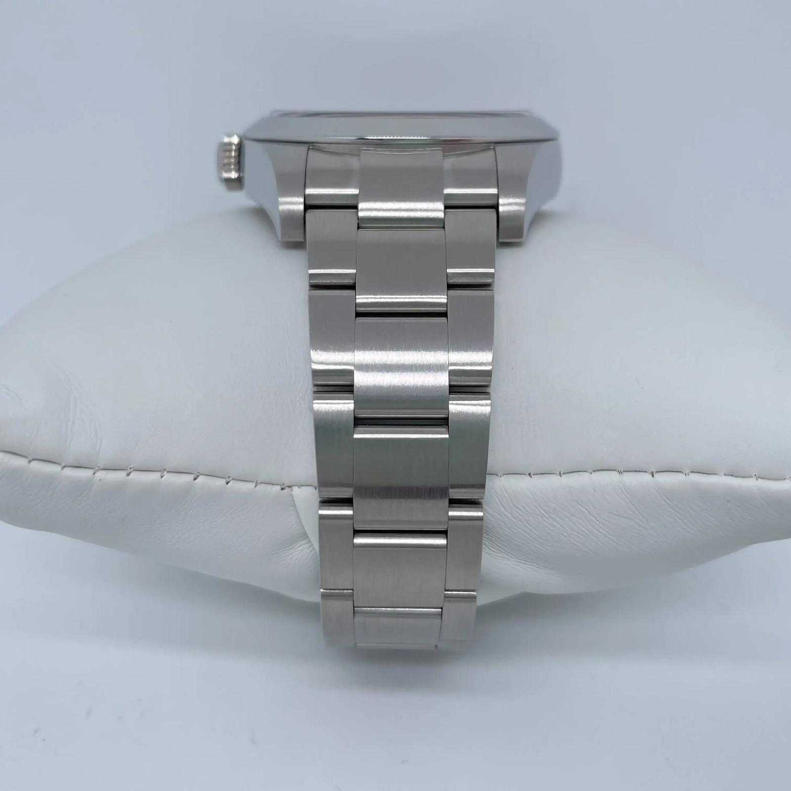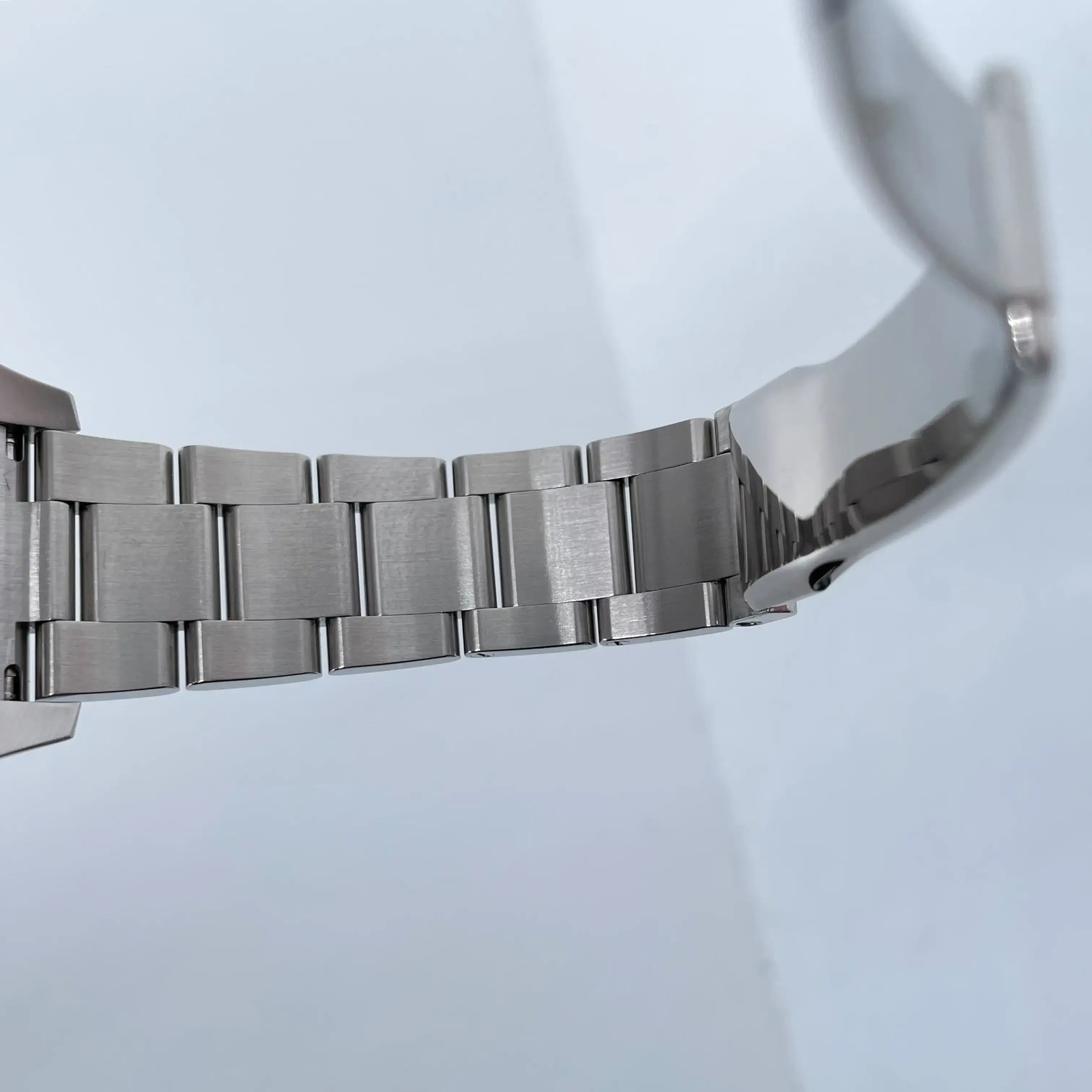 Operating a Chronograph requires using the pushers on the side of the case. The top pusher is used to start and stop the chronograph hand while the one at the bottom is used to reset it. Once the top pusher is pressed, the hand will run continuously, which you can track using the accompanying sub-dial. In order to reset the chronograph, it has to be stopped first. Otherwise the button will do nothing when pressed.