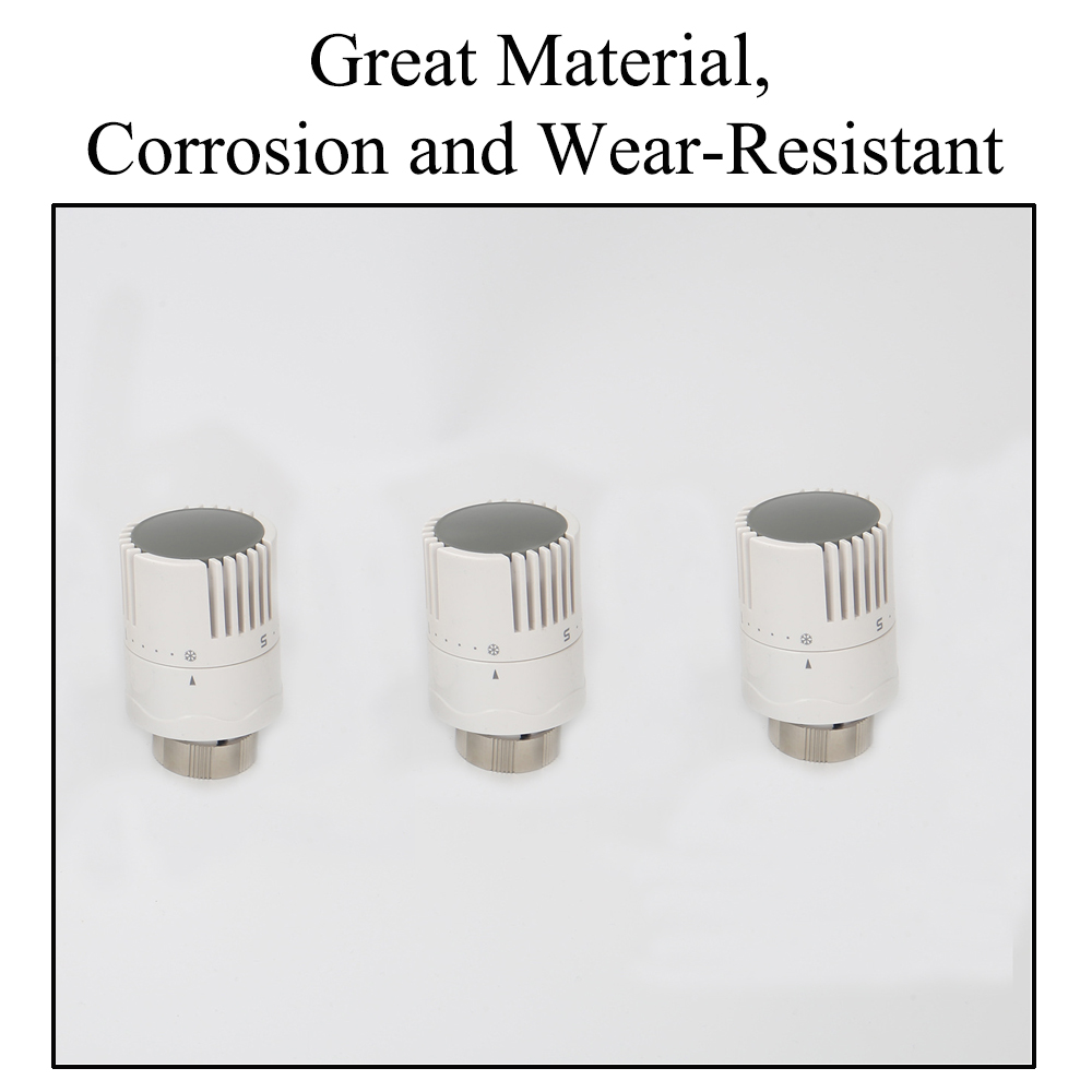 【Rugged】The regulating valve head's plastic shell not only has good impact resistance and abrasion resistance, but also can effectively resist corrosion and aging in daily use. At the same time, its built-in potion work material after special formula treatment, has good stability and reaction sensitivity, can maintain long-term efficient working condition. The copper bottom of the thermostat radiator valve head also helps to sense the ambient temperature changes faster.