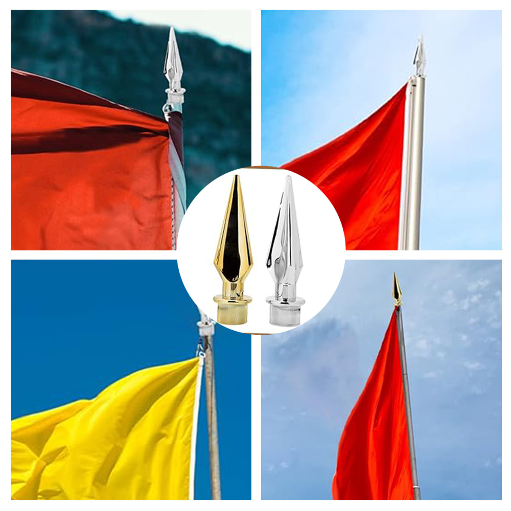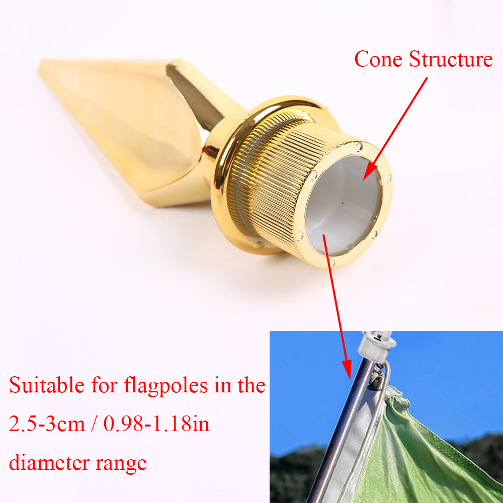 【Strong Adaptability】The inner part of the flagpole spear adopts a well-designed cone structure, which is able to adapt to flag poles within the range of 2.5-3cm/0.98-1.18in in diameter, realizing a solid and close connection. This feature ensures the head's wide applicability in different scenarios and meets your diverse needs.