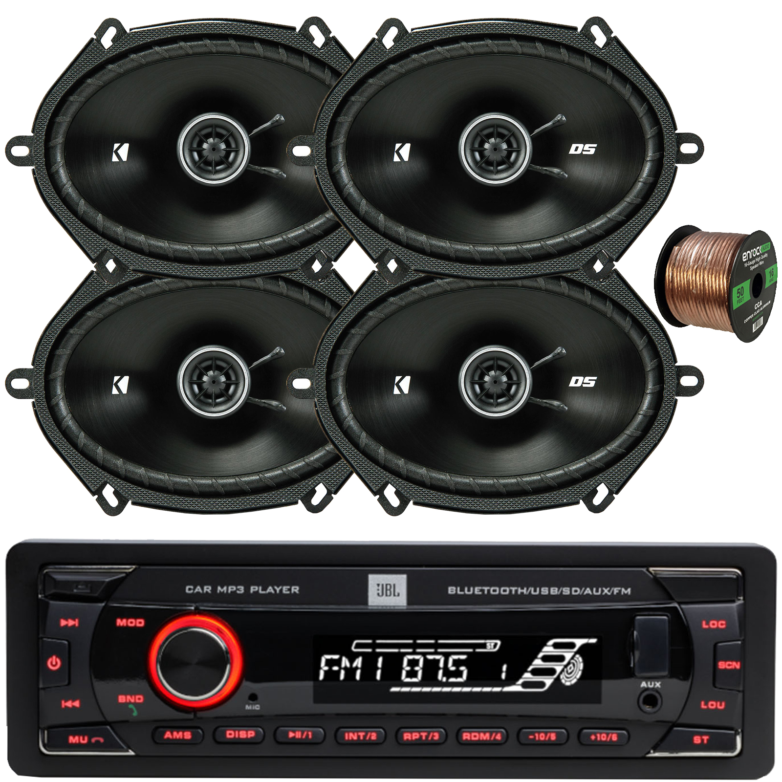 PACKAGE BUNDLE INCLUDED: JBL Celebrity100 Single DIN Bluetooth FM Radio USB/AUX SD/MP3 Cars High Power Mechless Stereo Receiver, 4x Kicker 43DSC6804 D-Series 6x8" 200 Watt Peak Power 2-Way Coaxial Car Audio Speakers, 50 Feet 16 Gauge Speaker Wire
