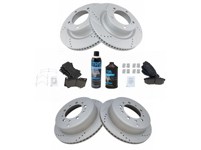 - Package Contents: (1) 12 oz DOT 3 & 4 Brake Fluid; (1) 13 oz Non-Chlorinated 50 State Formula Brake Cleaner; (1) Front Ceramic Brake Pad Set with Contact Point Grease & Hardware; (1) Rear Ceramic Brake Pad Set with Contact Point Grease & Hardware; (2) Front G-Coated Performance Brake Rotors; (2) Rear G-Coated Performance Brake Rotors