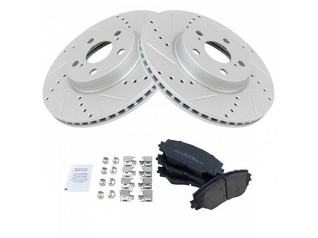 - Package Contents: (1) Front Semi-Metallic Brake Pad Set with Contact Point Grease & Hardware; (2) Front G-Coated Performance Brake Rotors