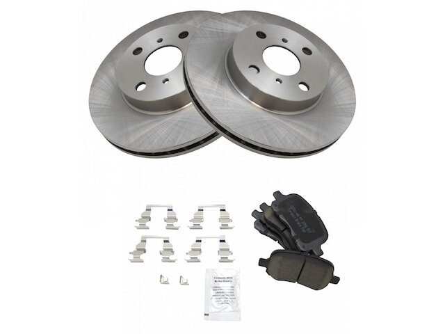 - Package Contents: (2) Front Brake Rotors; (1) 12 oz DOT 3 & 4 Brake Fluid; (1) 13 oz Non-Chlorinated 50 State Formula Brake Cleaner; (1) Front Ceramic Brake Pad Set with Contact Point Grease & Hardware