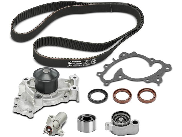 - Package Contents: 1x Timing Belt, 1x Timing Belt Tensioner, 1x Hydraulic Tensioner, 1x Timing Idler, 2x Camshaft Seals, 1x Crankshaft Seal, 1x Water Pump with Gasket