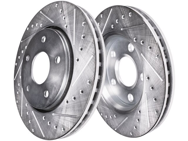 Features:- Kit Includes: (2) Front Drilled and Slotted Brake Rotors