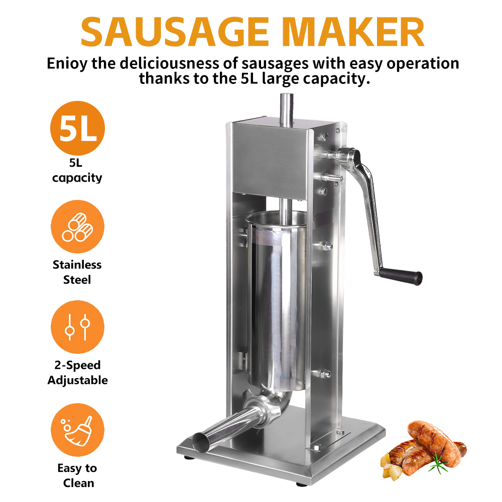 Are you tired of running out of room? The 1.3 Gal / 5L capacity ensures that more sausages can be made at a time, saving you a lot of efforts. The detachable design is perfect for easy cleaning.