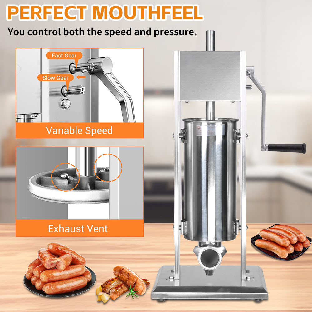 Two speeds are available: fast speed for filling sausage and slow speed for filling casing. And guess what! It even features an ergonomic and comfortable handle for easy and efficient operation.