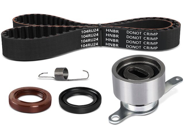 - Package Contents: 1x Belt, 1x Tensioner, 1x Spring, 1x Camshaft Seal, 1x Crankshaft Seal