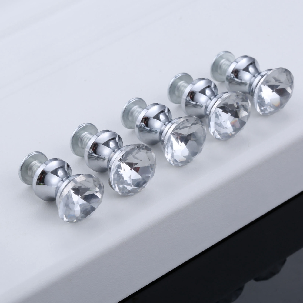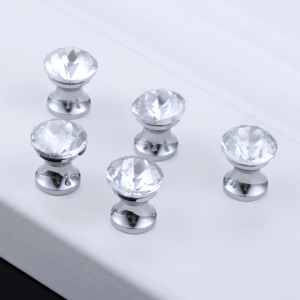 5pcs Crystal Knob Mini Diamond Jewelry Box Knob Glass Clear Cabinet Pull Handles
