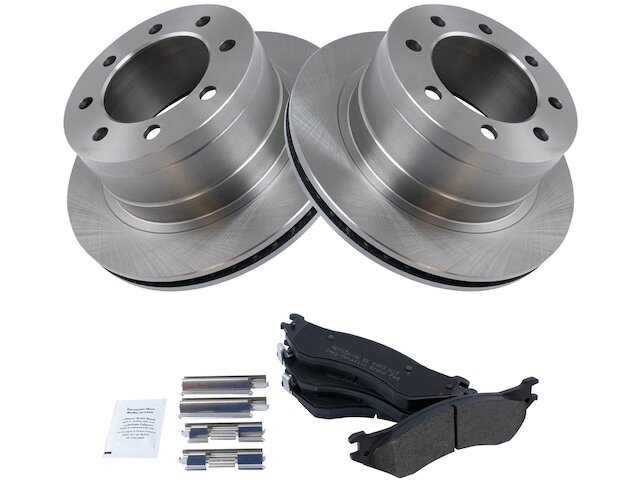 - Package Contents: (2) Rear Brake Rotors; (1) 12 oz DOT 3 & 4 Brake Fluid; (1) 13 oz Non-Chlorinated 50 State Formula Brake Cleaner; (1) Rear Semi-Metallic Brake Pad Set with Contact Point Grease & Hardware