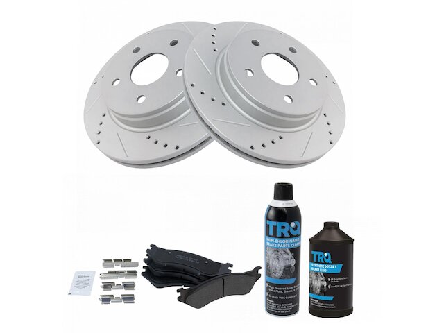 - Package Contents: (1) 12 oz DOT 3 & 4 Brake Fluid; (1) 13 oz Non-Chlorinated 50 State Formula Brake Cleaner; (1) Front Semi-Metallic Brake Pad Set with Contact Point Grease & Hardware; (2) Front G-Coated Performance Brake Rotors