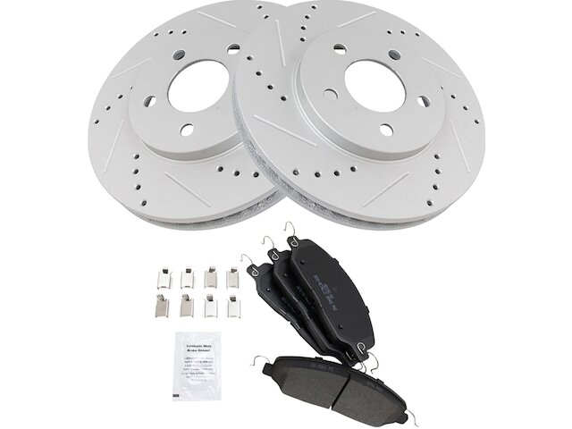- Package Contents: (1) Front Semi-Metallic Brake Pad Set with Contact Point Grease & Hardware; (2) Front G-Coated Performance Brake Rotors