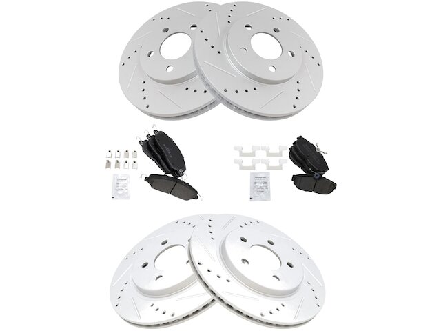 - Package Contents: (1) Front Semi-Metallic Brake Pad Set with Contact Point Grease & Hardware; (1) Rear Semi-Metallic Brake Pad Set with Contact Point Grease & Hardware; (2) Front G-Coated Performance Brake Rotors; (2) Rear G-Coated Performance Brake Rotors