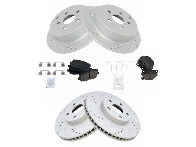 - Package Contents: (1) Front Ceramic Brake Pad Set with Contact Point Grease & Hardware; (1) Rear Ceramic Brake Pad Set with Contact Point Grease & Hardware; (2) Front G-Coated Performance Brake Rotors; (2) Rear G-Coated Performance Brake Rotors