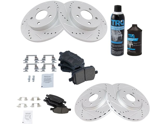 - Package Contents: (1) 12 oz DOT 3 & 4 Brake Fluid; (1) 13 oz Non-Chlorinated 50 State Formula Brake Cleaner; (1) Front Ceramic Brake Pad Set with Contact Point Grease & Hardware; (1) Rear Ceramic Brake Pad Set with Contact Point Grease & Hardware; (2) Front G-Coated Performance Brake Rotors; (2) Rear G-Coated Performance Brake Rotors
