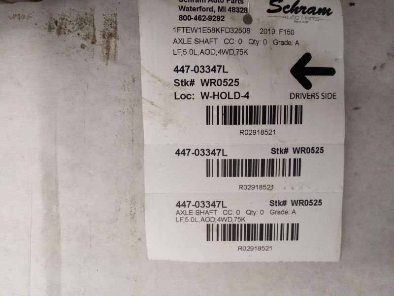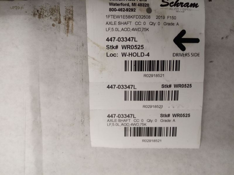 LF,5.0L,AOD,4WD,75K Quality Original Equipment Axle Shaft for Your Vehicle Schram Auto and Truck Parts - Axle Shaft or Jack Shaft Welcome to our listing for a recycled original equipment Axle Shaft / Jack Shaft. This essential component plays a vital role in your vehicle's drivetrain system. We take pride in offering inspected and fully functional axle shafts to ensure your vehicle's performance. Dependable Working Condition All of our used axle shafts have been meticulously inspected and are confirmed to be in good working condition. We understand the importance of reliable components in maintaining your vehicle's performance and safety. Confirm Fitment Before making a purchase, we strongly advise that you carefully read the provided 'FITMENT GUIDE.' This guide will assist you in confirming whether this