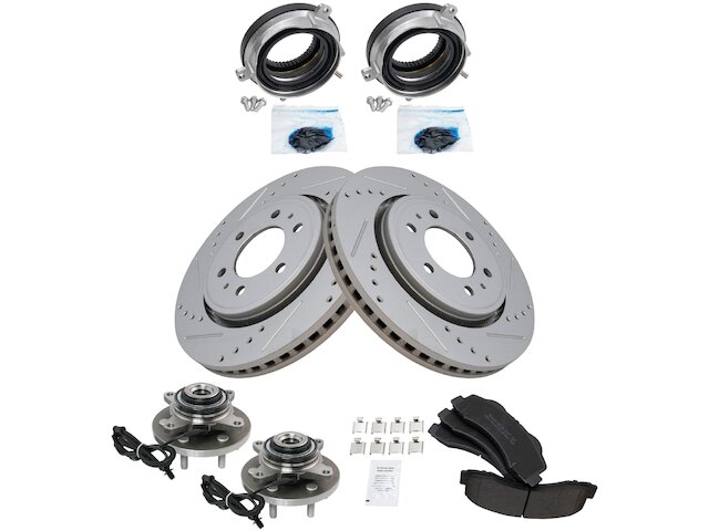 - Package Contents: (2) Front Wheel Bearing & Hub Assemblies; (2) Front Auto-Locking Hub Actuators; (1) Front Semi-Metallic Brake Pad Set with Contact Point Grease & Hardware; (2) Front G-Coated Performance Brake Rotors