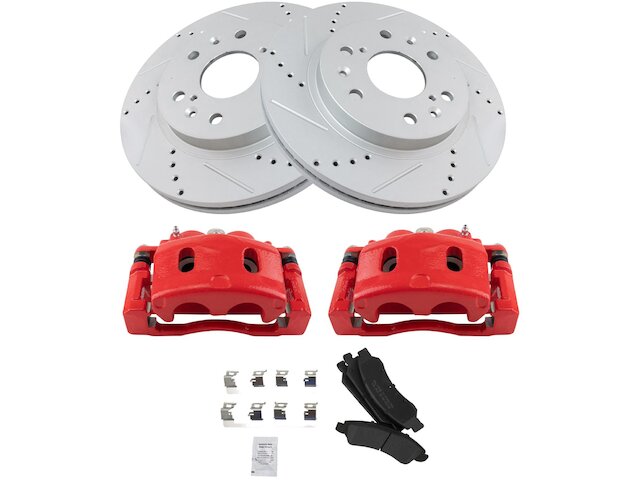 - Package Contents: (1) Front Semi-Metallic Brake Pad Set with Contact Point Grease & Hardware; (2) Front Performance Brake Calipers with Hardware; (2) Front G-Coated Performance Brake Rotors