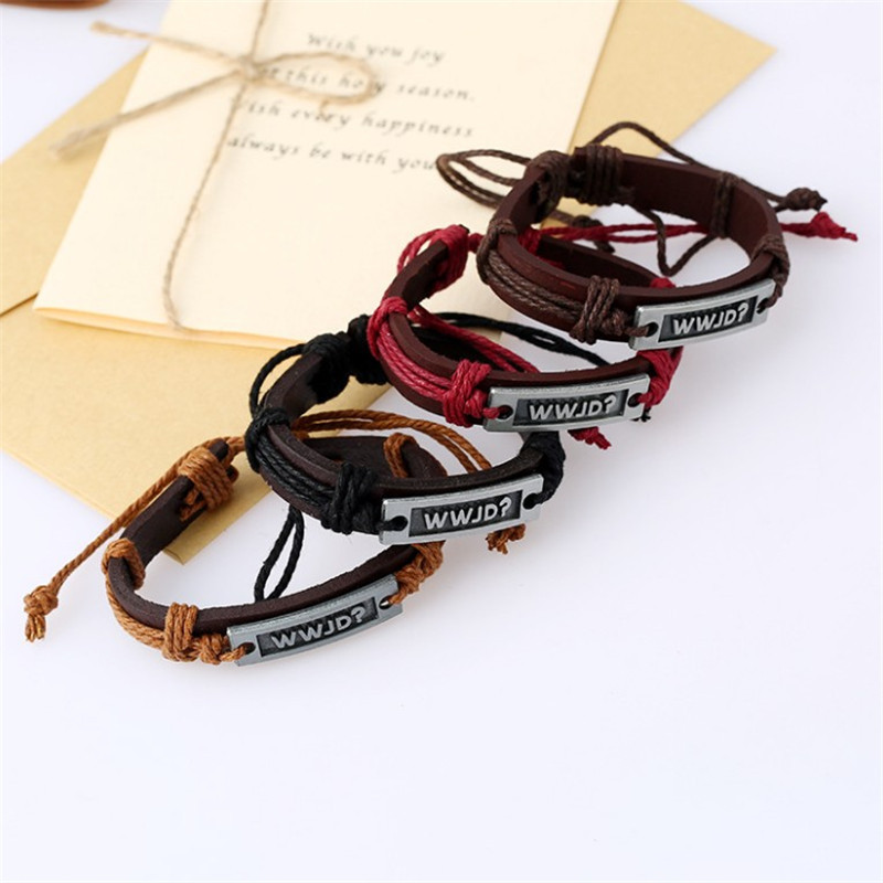 Trendy Western Style Leather Bracelet - WWJD Letter Design Charm Bracelet