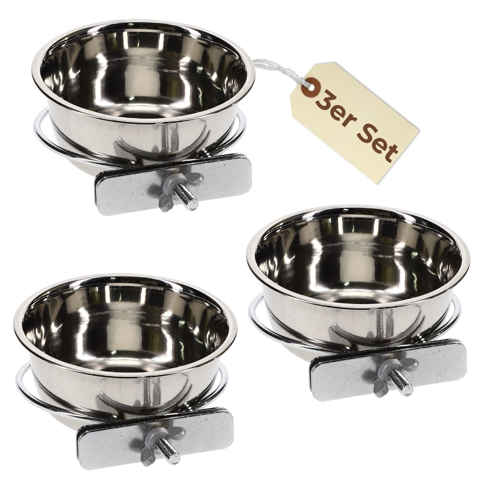 2er Set Edelstahlnapf zum Einhängen 0,95 L mit Schraubenhalterung Vogelnapf Hundenapf Hasen Kaninchen Katzen Napf Futter Wasser Napf