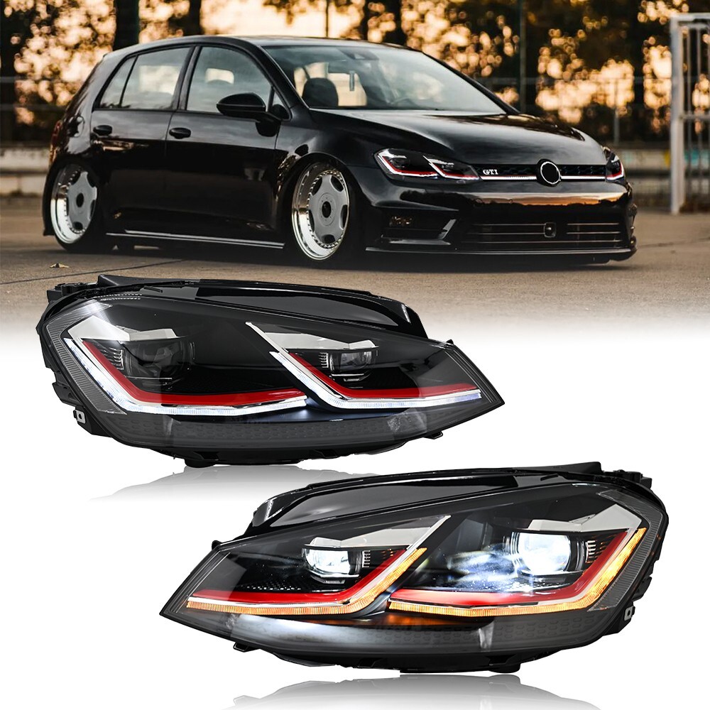Full LED Headlights For VW MK7 Golf 2013-2018 DRL Head Front Lamps Assembly Pair
