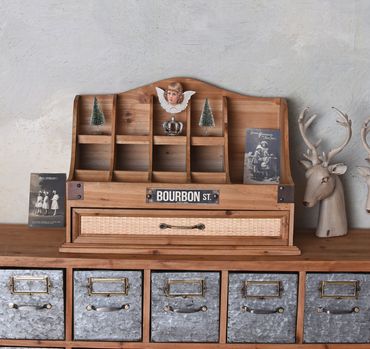 Ob im Homeoffice, Atelier oder Eingangsbereich – dieser Organizer sorgt für Ordnung und verleiht jedem Arbeitsplatz gleichzeitig eine stilvolle Loft-Note. Die Kombination aus rustikalem Holz und schwarzem Metall sorgt für einen zeitlosen Retro-Look, der sich vielseitig kombinieren lässt.