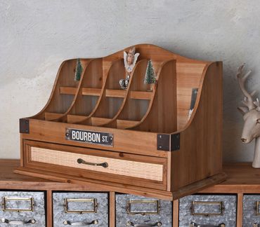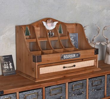 Mit einer Schublade und acht offenen Ablagefächern bietet die Ablage ausreichend Platz für Briefe, Dokumente, Notizbücher oder Büroaccessoires. Die kompakte Größe von 37 cm Höhe, 50 cm Breite und 28 cm Tiefe macht sie ideal für den Einsatz auf dem Schreibtisch, Sideboard oder Regal.