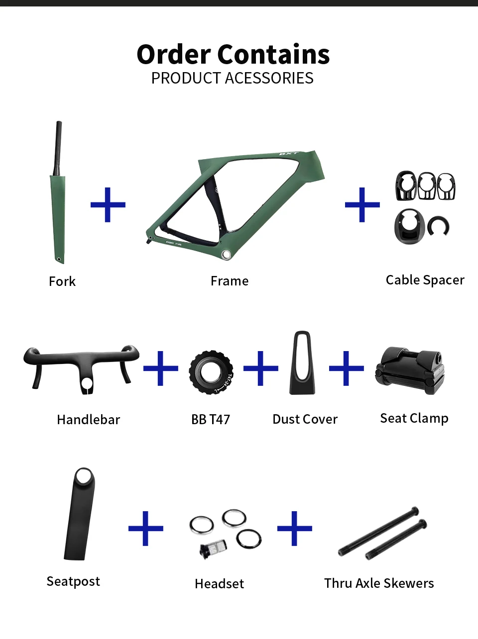 Order Contains: Frame+Fork+Handlebar+Seat Post+Seat Clamp+Thru Axle Skewers+Headset;