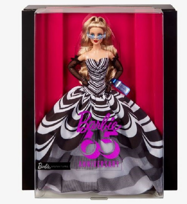 This glamorous Barbie doll marks the 65th anniversary of Barbie in stunning fashion. A celebration of the icon's heritage, her commemorative look is imbued with gorgeous head-to-toe details that nod to the original Barbie doll. A vision in black and white with pops of sapphire color, she is a must-have for collectors, Barbie lovers, and fashion aficionados the world over. Includes doll stand and Certificate of Authenticity. Brand new and never removed from a nice box and comes in the additional Mattel Shipper Box! IN STOCK NOW!