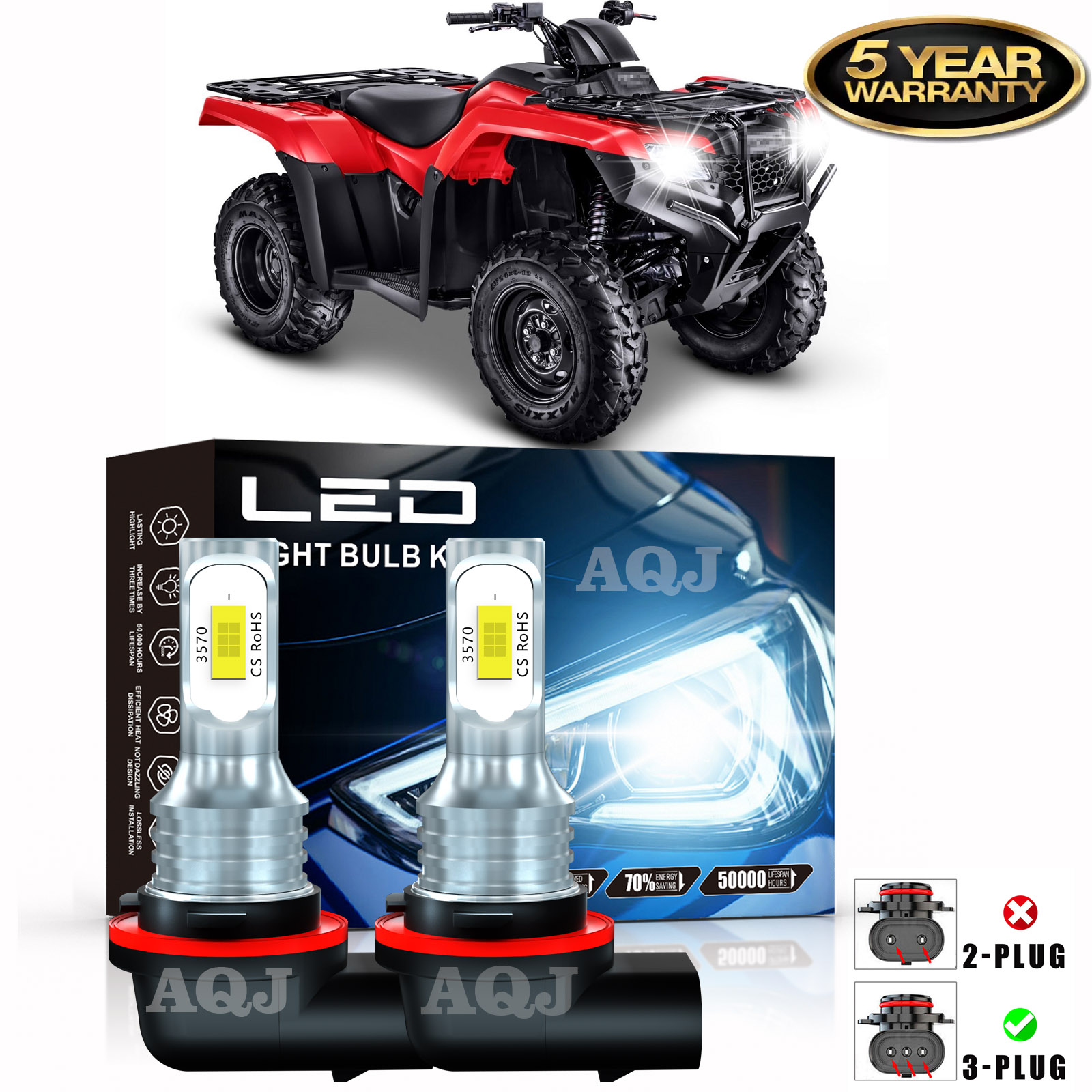 These are LED headlight bulbs for a For 2014-2023 Honda Rancher, For Foreman, and For Rubicon. They are a direct fit that plug into your factory harness.