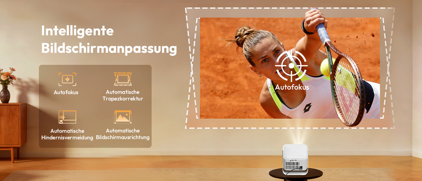 | Einrichtungsfreie Projektion: Autofokus, Trapezkorrektur und Hindernisvermeidung |