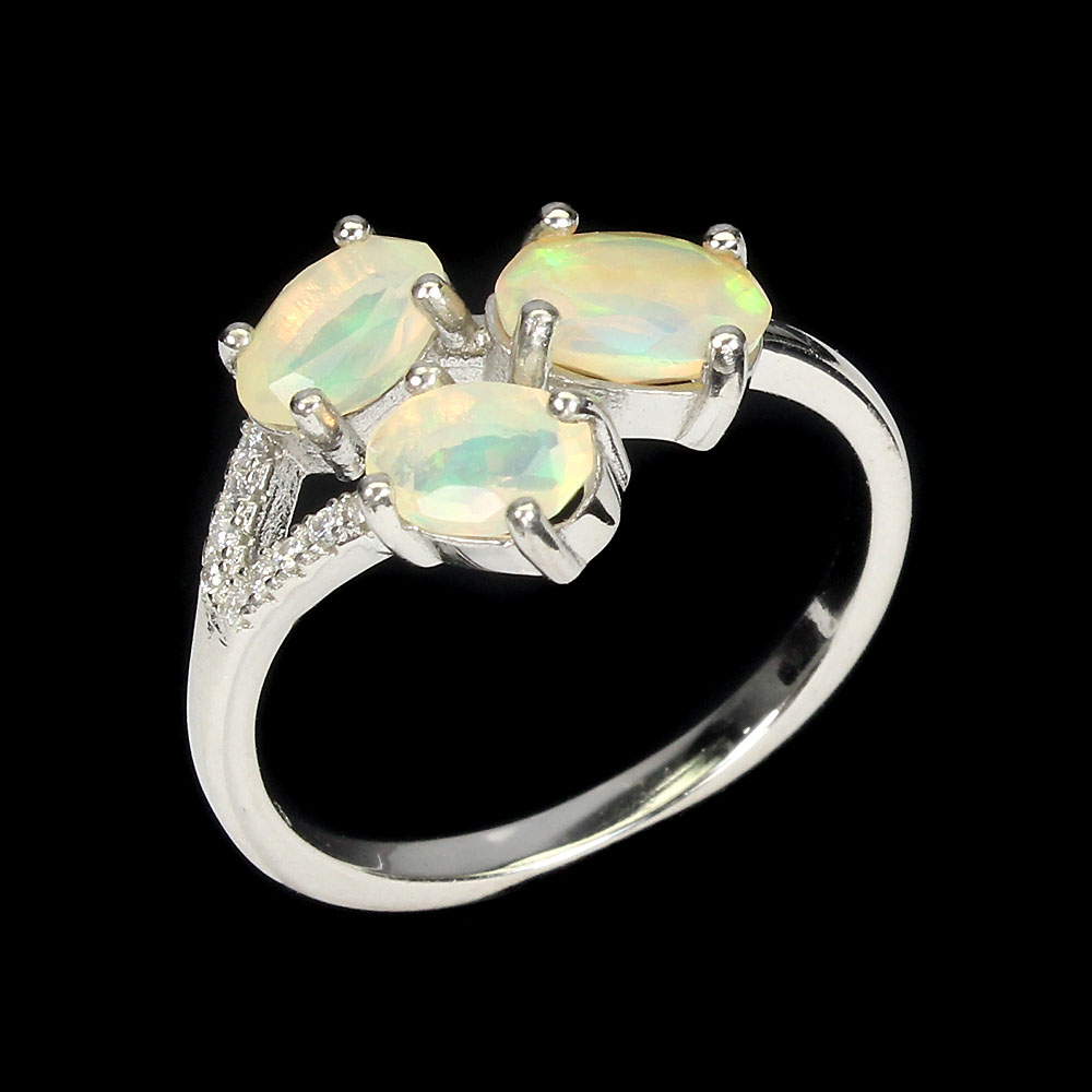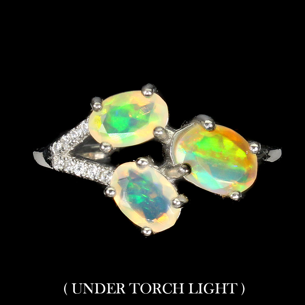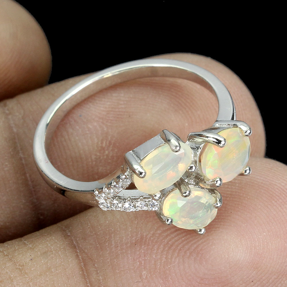 Unheated Oval Fire Opal Rainbow 7x5mm Simulated Cz 925 Sterling Silver Ring 8