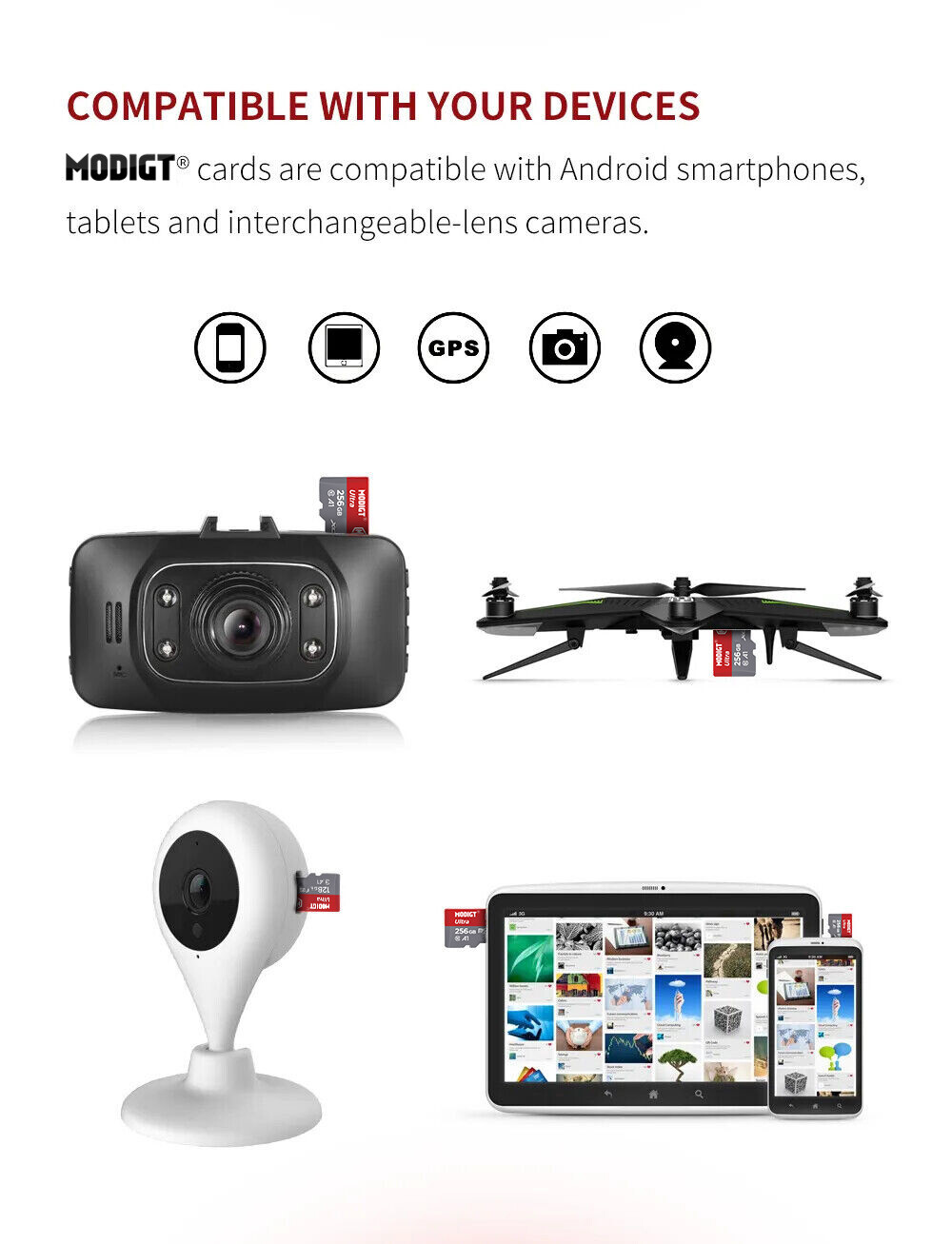 | Brand : | MODIGT | | Format : | MicroSD | | Storage Capacity : | 32GB, 64GB, 128GB, 256GB, 512GB | | Speed Class : | Class 10 | | Series : | Ultra | | Features : | High Capacity, High Speed, Waterproof | | Compatible Brand : | Universal | | Compatible Model : | Universal | | Type : | SD Card | | Come With : | Adapter | | Manufacturer Warranty : | 2 Years | | Fit For : | Smartphones Tablets PC Dash Cams | | Read Speed 1 : | 32G -- 120M/s | | Read Speed 2 : | 64G -- 140M/s | | Read Speed 3 : | 128G -- 140M/s | | Read Speed 4 : | 256G -- 150M/s | | Read Speed 5 : | 512G -- 150M/s |