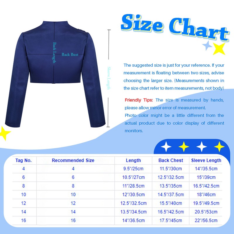 US Kids Girl's Satin Shrug Bolero Long Sleeve Open Front Cardigan Dress Cover Up