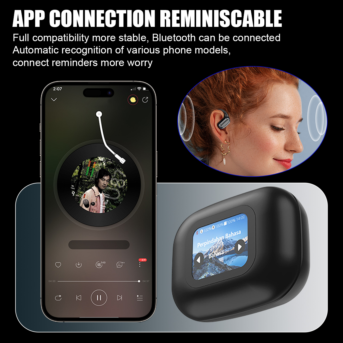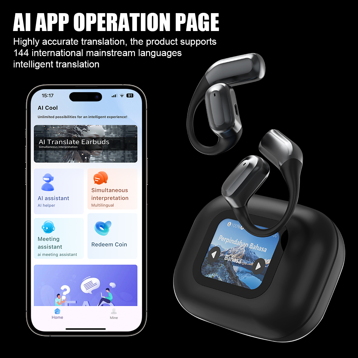 Product translation function, download the AI COOL app by scanning the QR code, then connect the earphones to your phone via Bluetooth, and then go to the APP to bind the connection.