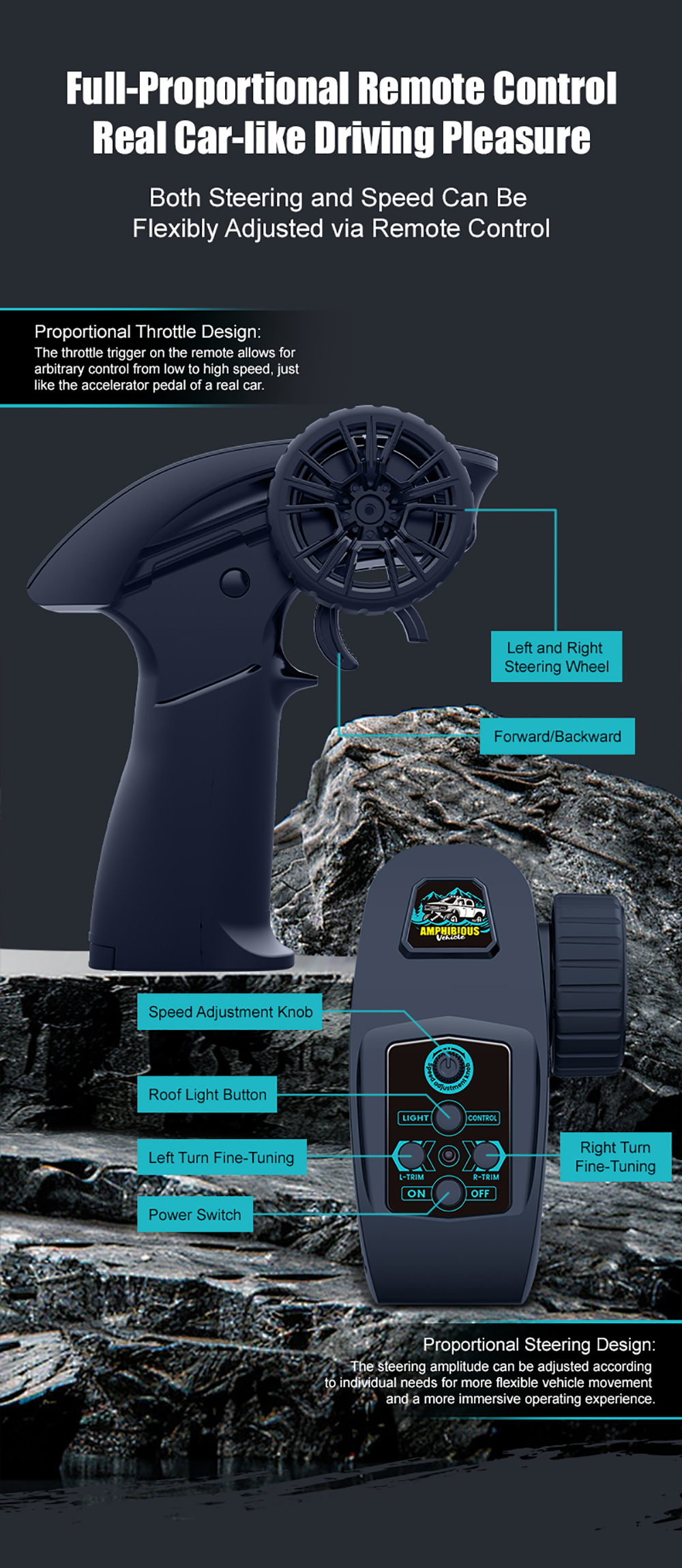 1. Freely maneuverable on both water and land Fearless, bringing you infinite fun.
