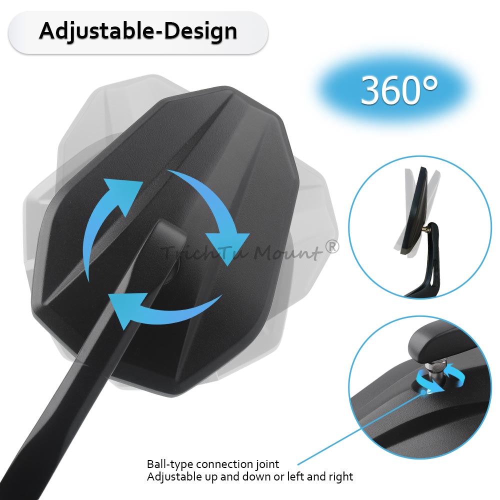 2.Adjustable-design:Design of Ball-type connection joint and adjustment holder, this round style bar end mirror can be 360 degrees rotated and freely adjusted up & down or sideway ,for better visibility!