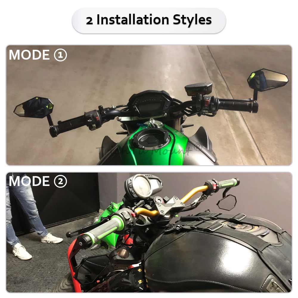 These side mirrors come with 2 metal adapter sleeve (the small one for handlebar hole is between13mm and 16mm,the big one + small one for handlebar hole is between17mm and 19mm), so fit perfectly for most brands of Motorcycle, Street Bike and Scooter with 7/8" Standard Handlebars.which are inner diameter of 13 mm to 19 mm.