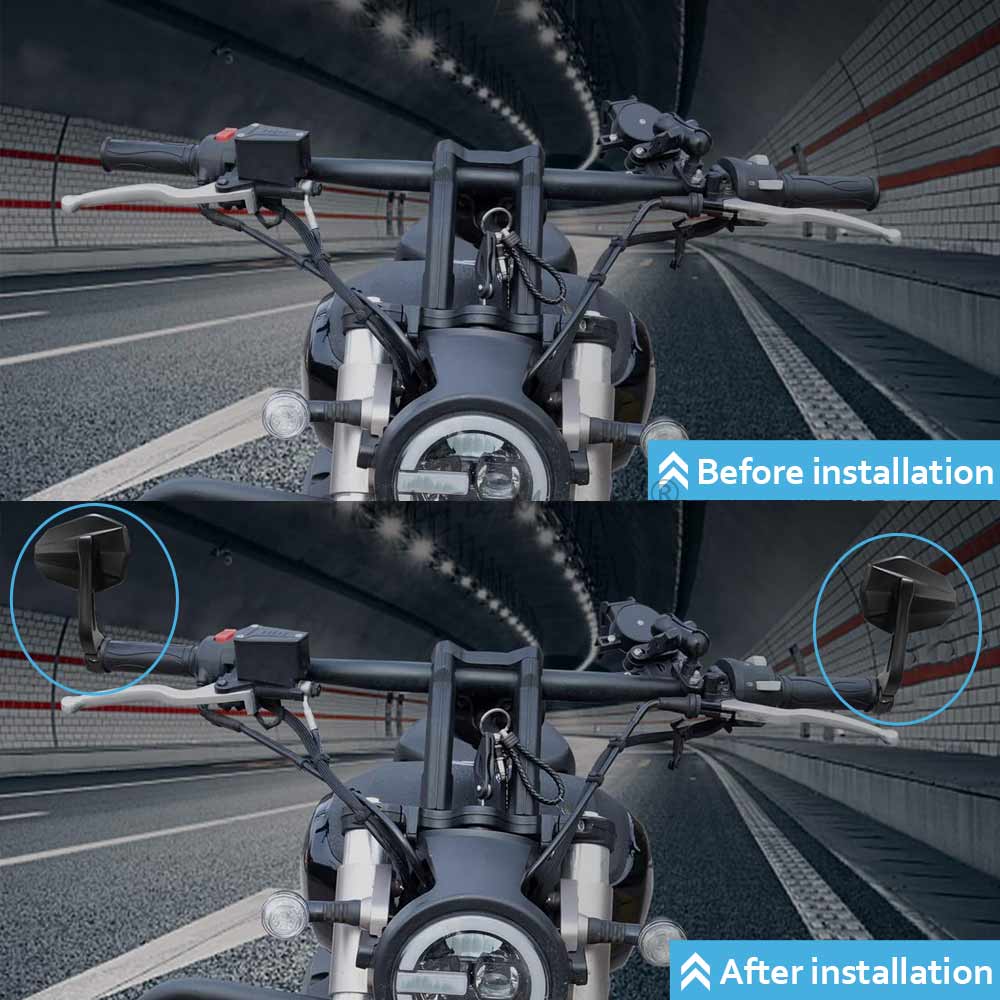 3.Wide And Clear View:White glass,Clarity Is Great, 4.3"x 3" Mirror glass for an extended field of vision.help you easily see the upcoming motorcycles. Widen your vision and keep your driving safety.