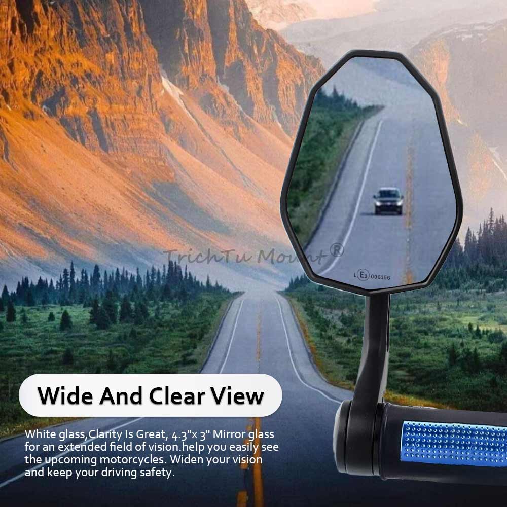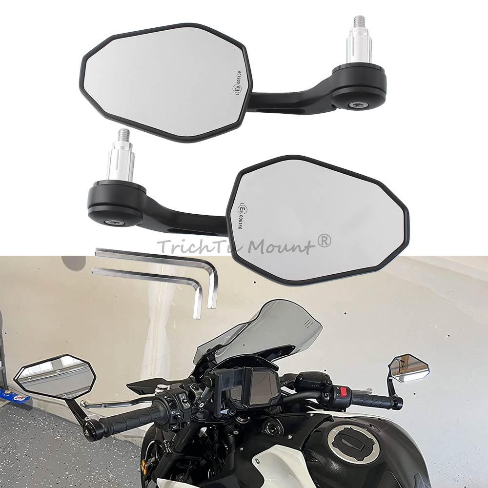 Our bar end mirrors feature a contemporary shell with an exclusive octagonal design, offering a modern and sophisticated look. Elevate your motorcycle's appearance and add a distinctive touch of individuality with this striking upgrade