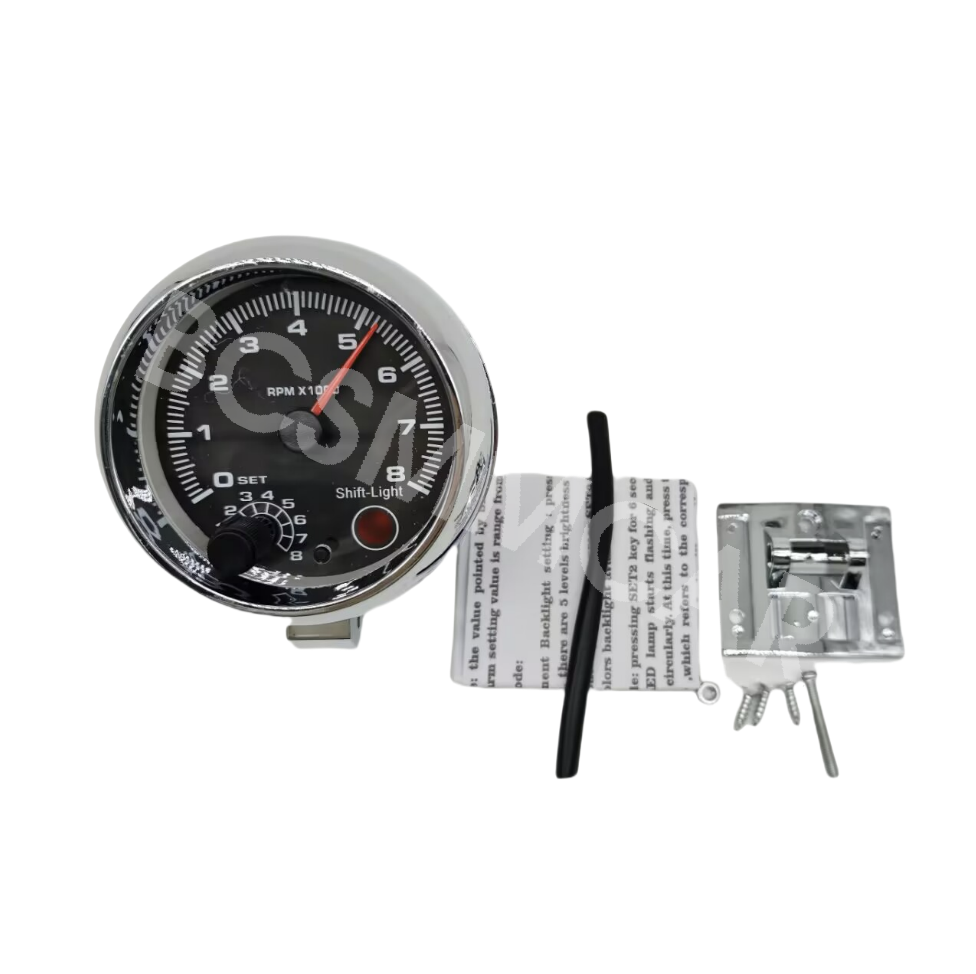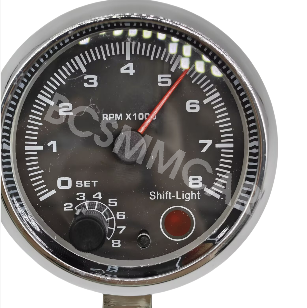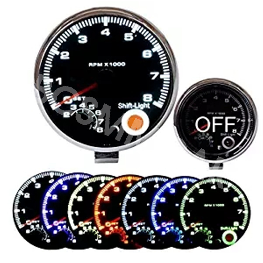Chrome 3.75" Car Tachometer Gauge Meter 0~8000RPM Adjustable Shift Light 7 LED Colors