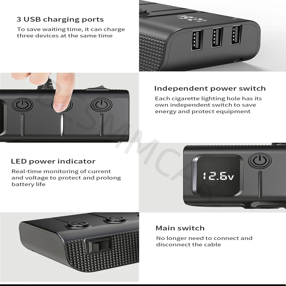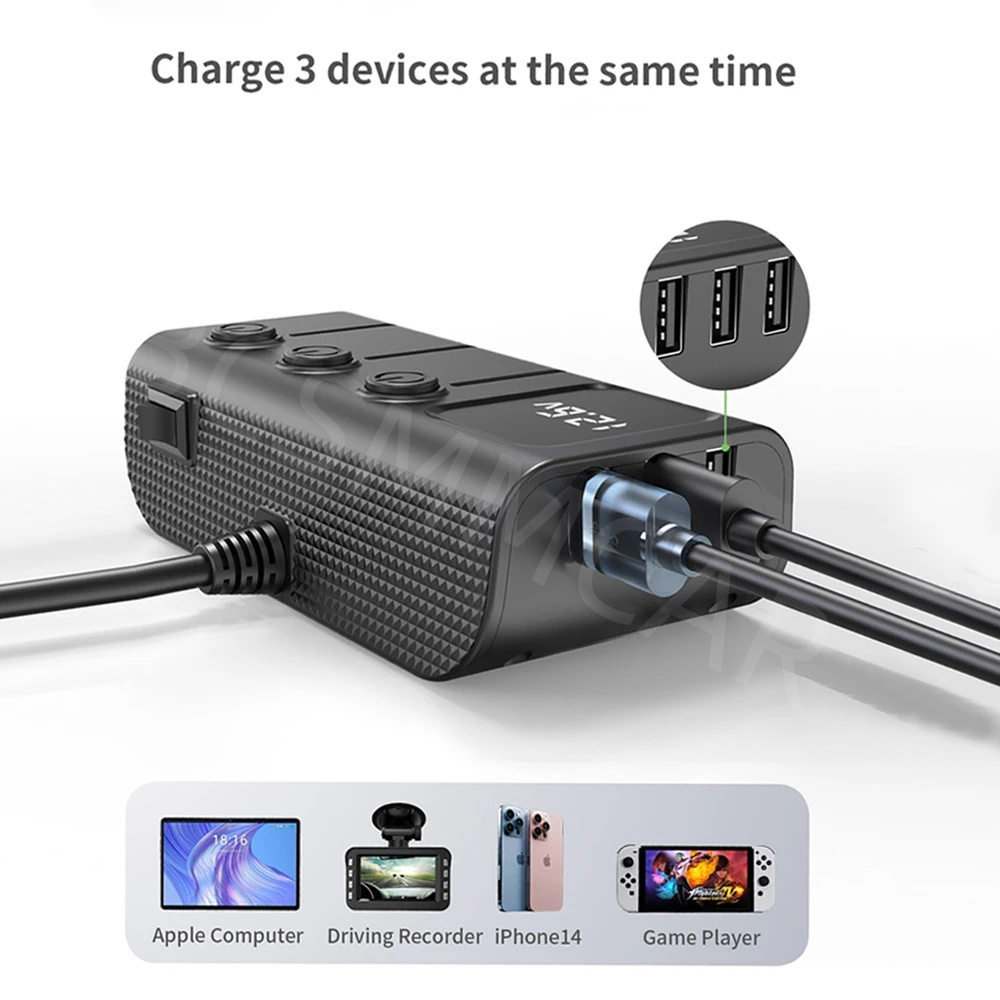 1. With excellent design and good quality, this multi-function 3 in 1power splitter is for all 12V/24V car and can meet your needs on road trip.