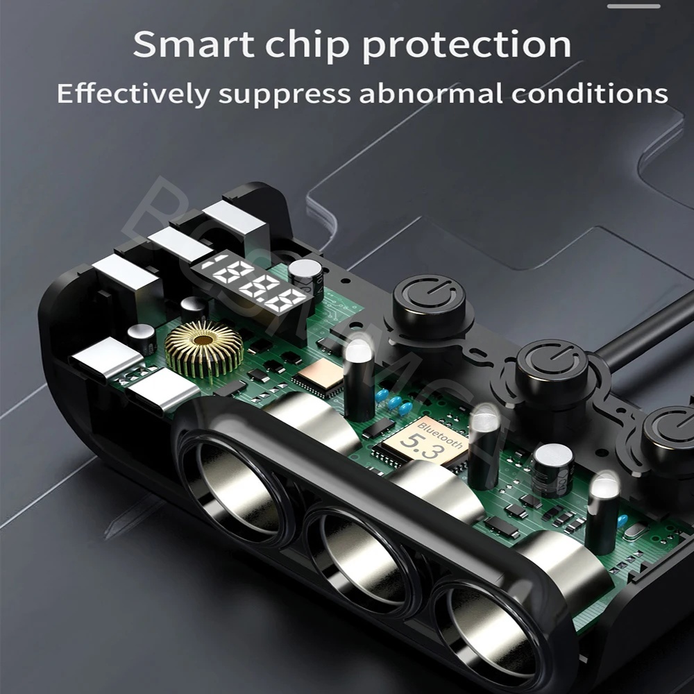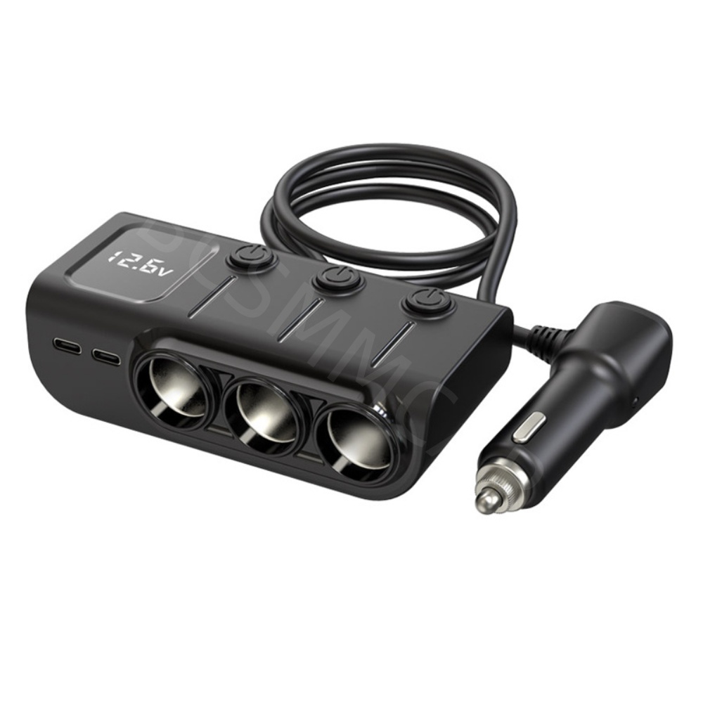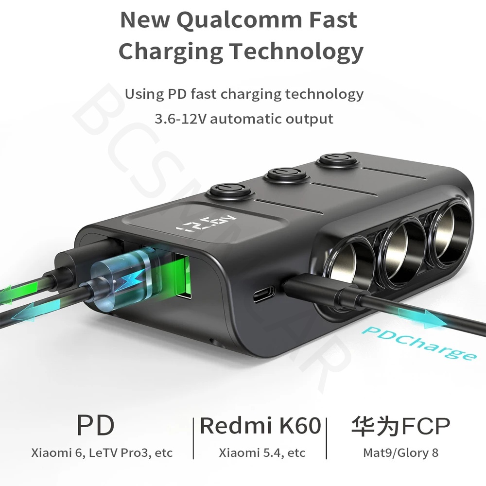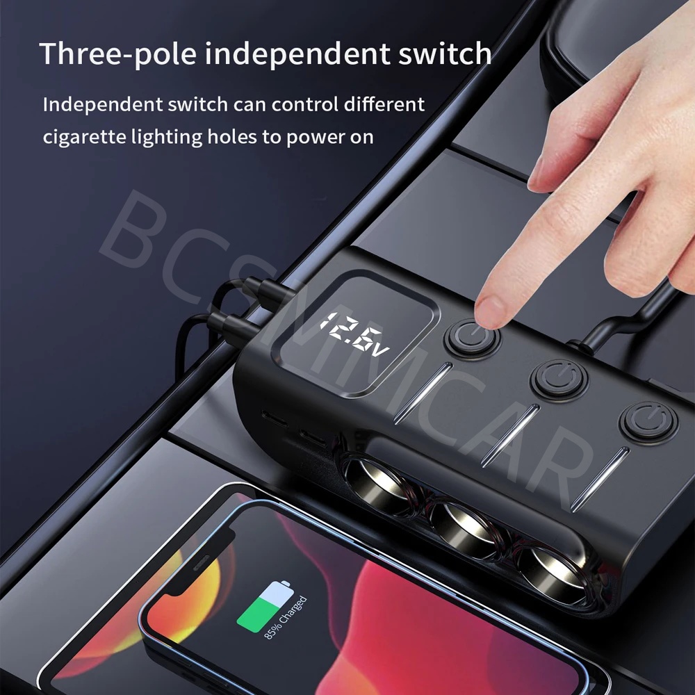 Car Phone 120W Charger One Tow Three Cigarette Lighter USB Port Expansion PD Fast Charging 36W Voltage Display