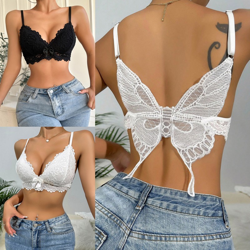 Women’s lace floral bra top, wire-free and unlined triangle cup.