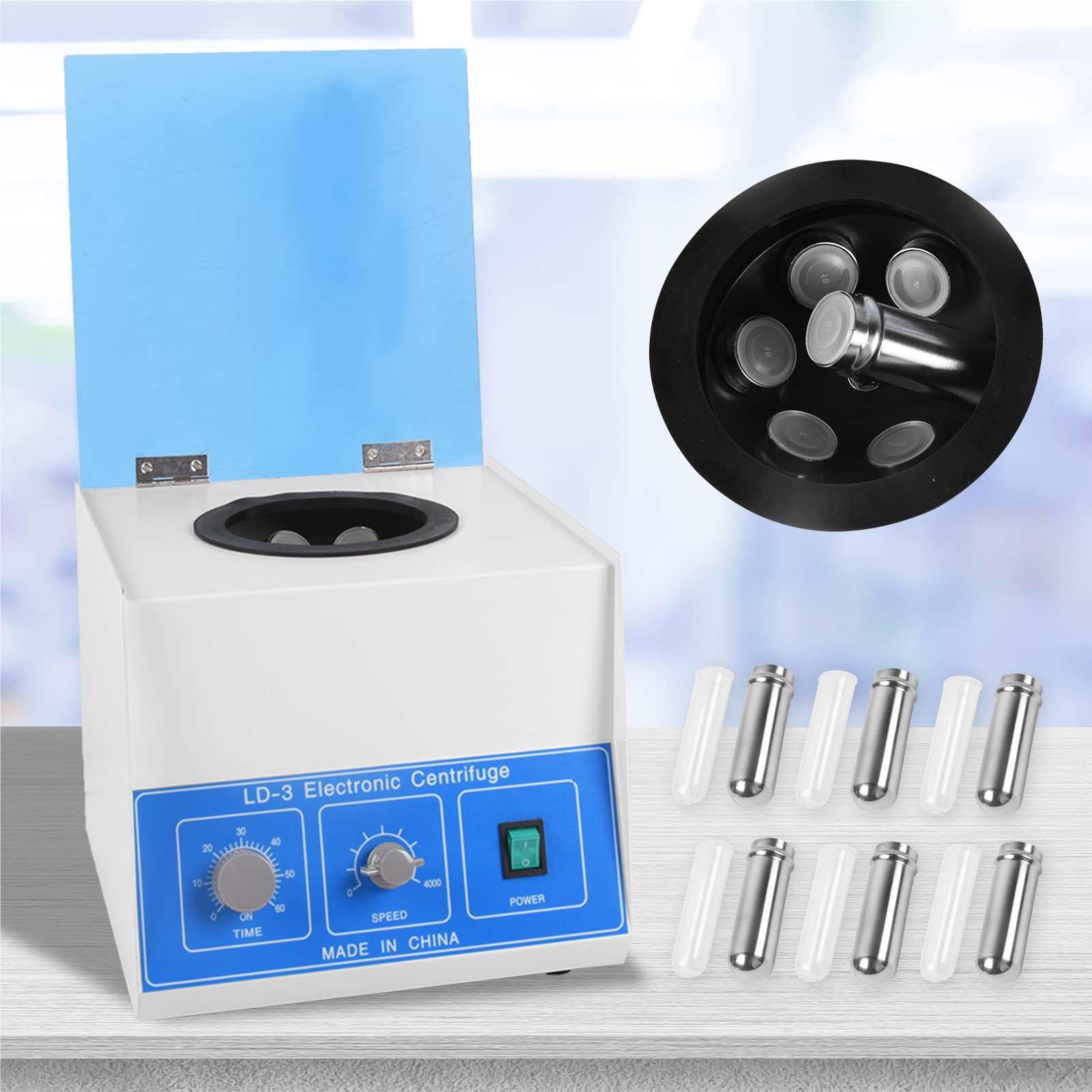 Adjustable SettingsCapacity: 50ml×6. Maximum speed: 4000r/min. Time range: 0~60min. Maximum centrifugal force: 2770×g. Current: AC 110V |