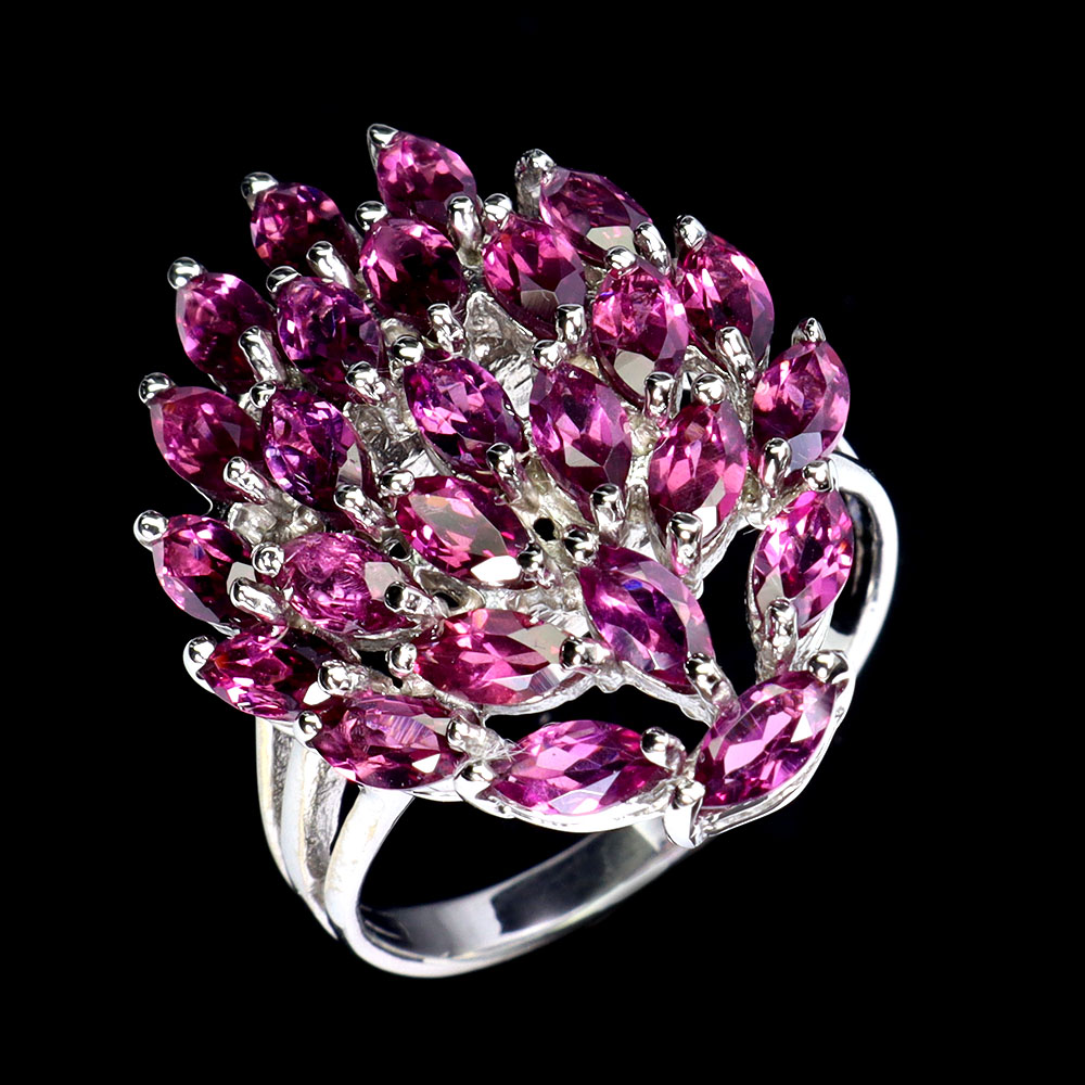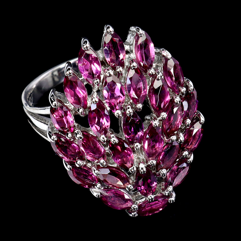 925 Sterling Silver Ring Marquise Rhodolite 6x3mm Natural Gemstone Jewelry