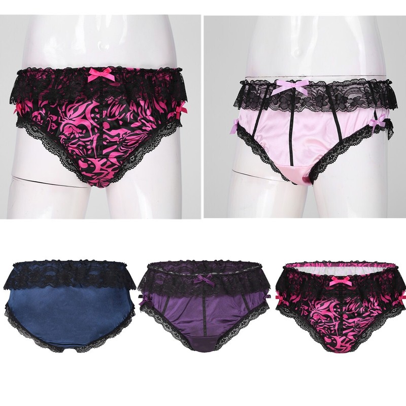 Mens Frilly Lace Thongs Crotchless Open Butt G-string Sissy Underwear.