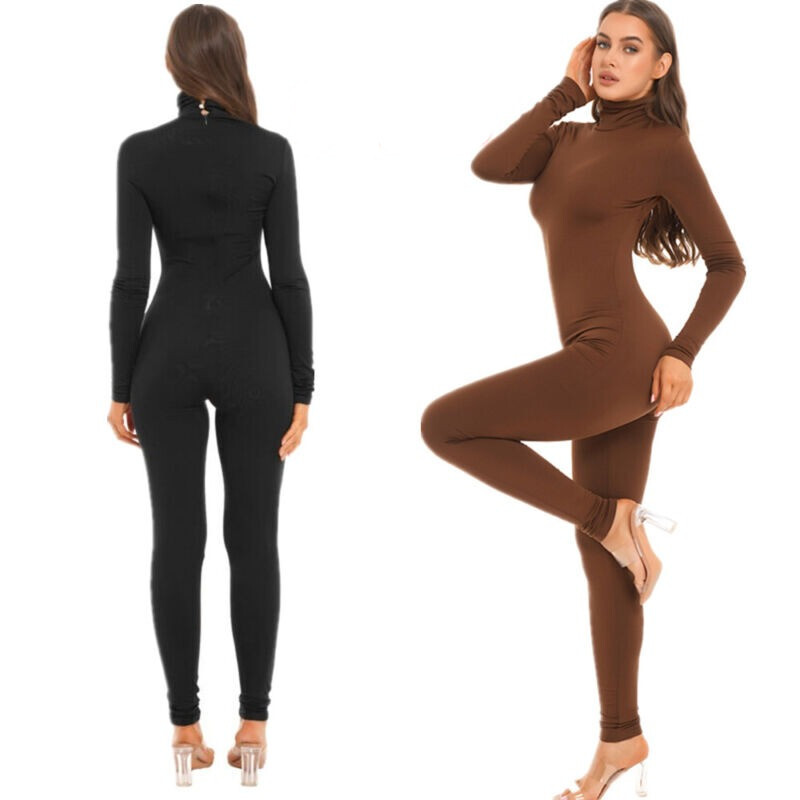 Women Zipper Back Mock Neck Sleeveless Bodysuit Patent Leather Catsuit Tight Jumpsuit.