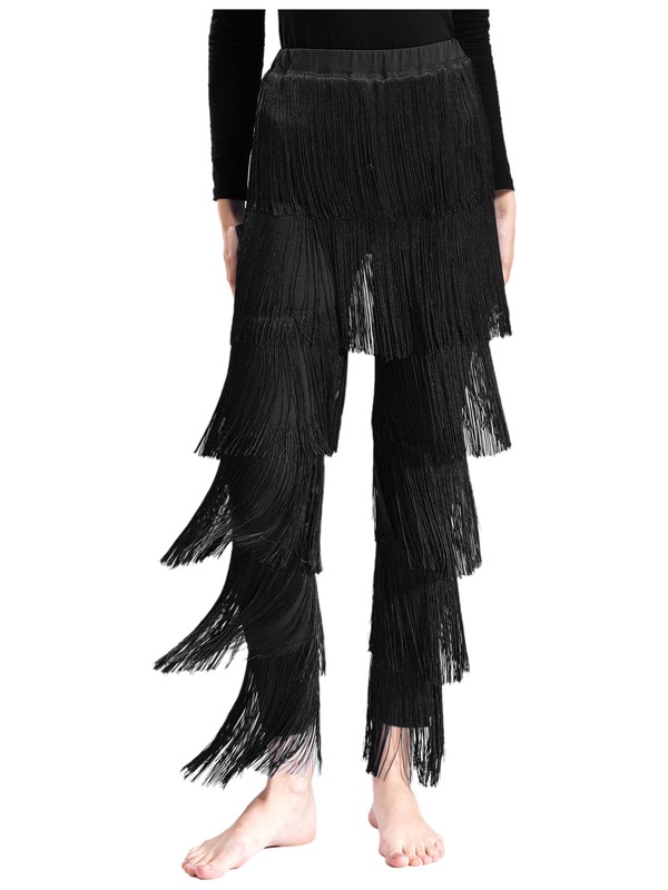 Tassel dance pants for women, tiered design tassel, elastic waistband can be stretched to fit different body shapes.