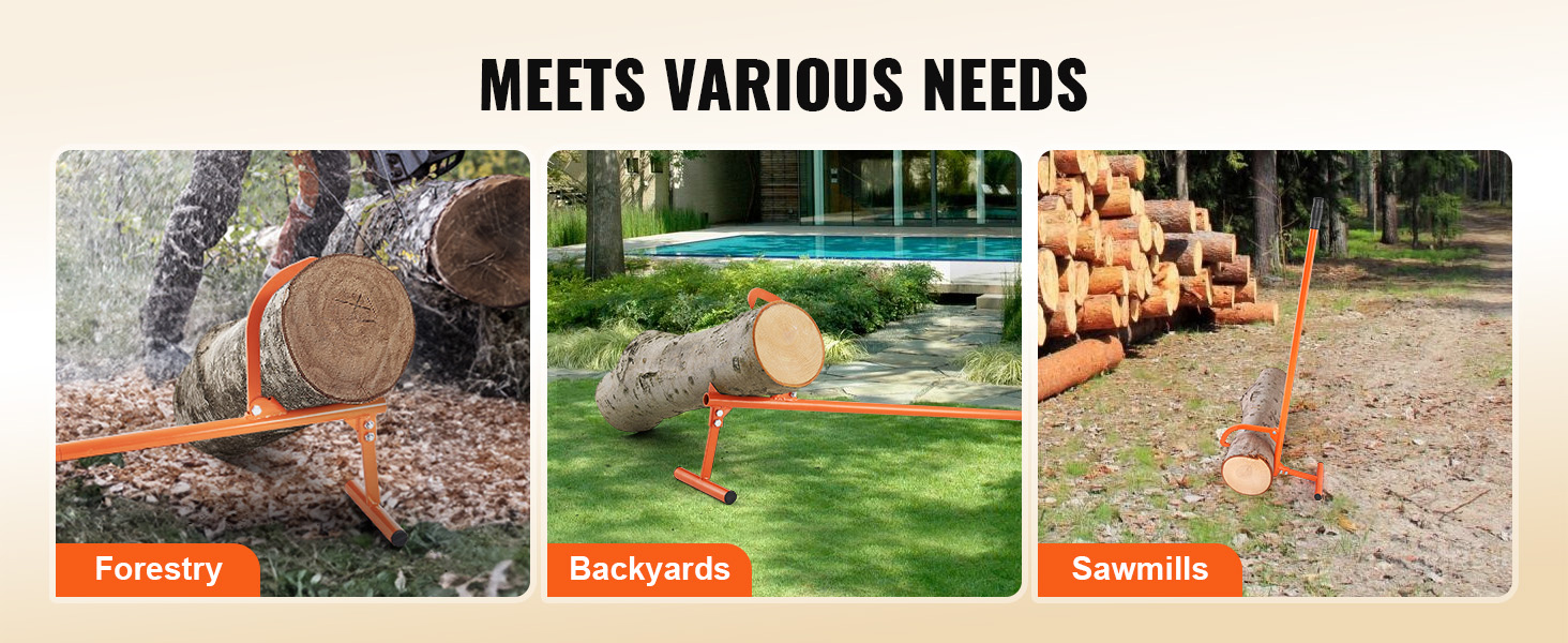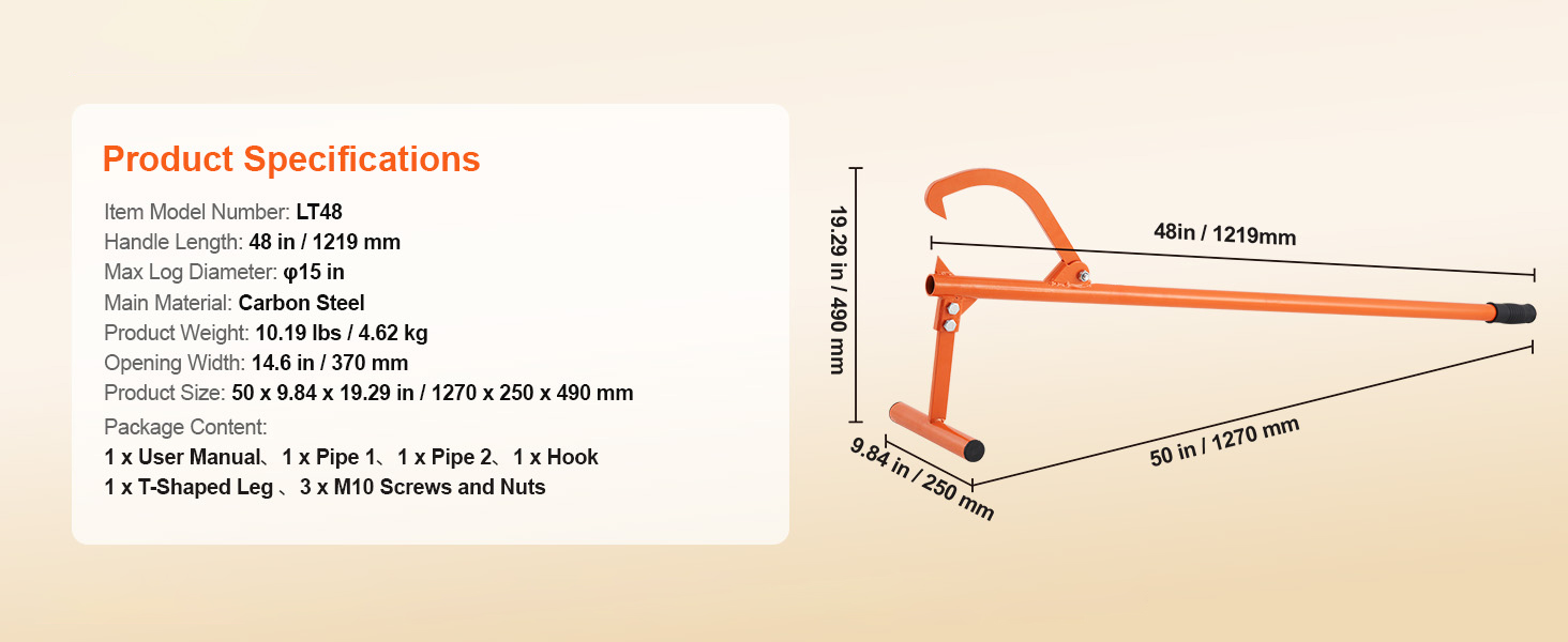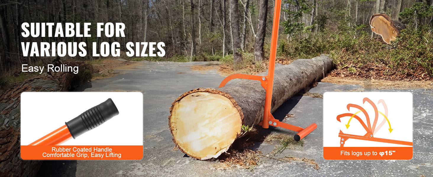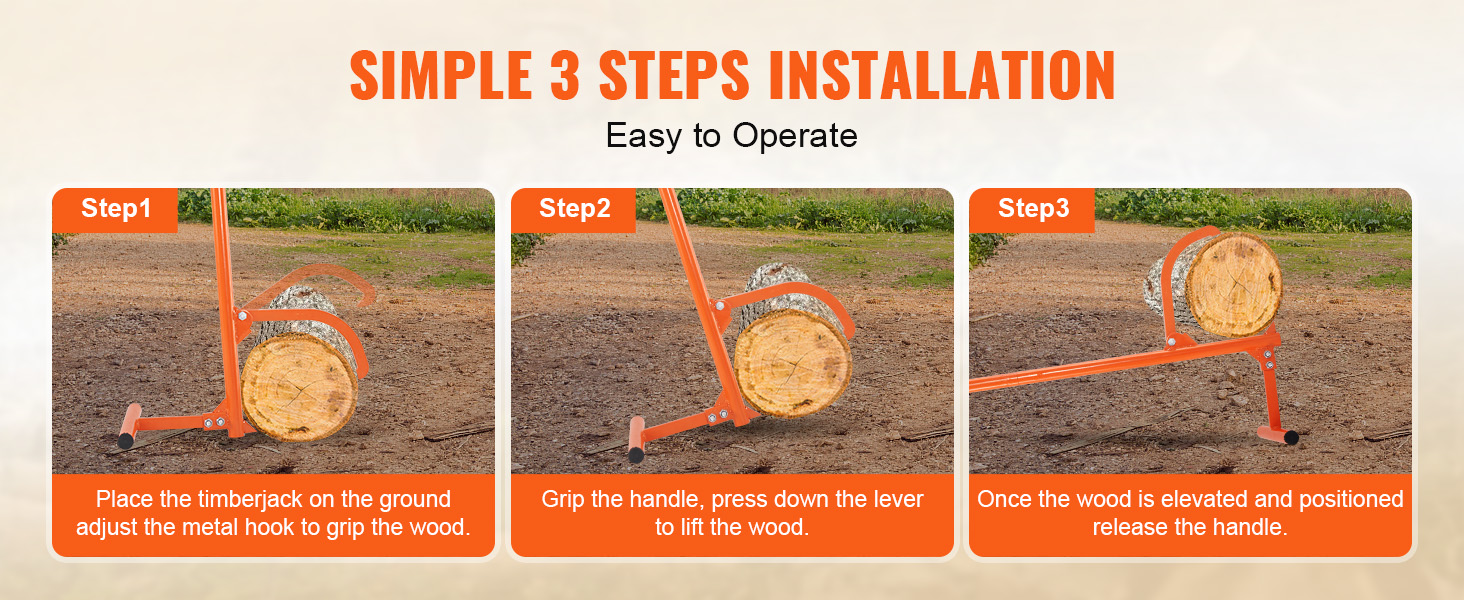 With 48" long handle, the log jack utilize the lever principle, that helps easily lift logs for cutting operations. The iron hook opening of the wood log jack can be adjusted, with a maximum application of φ15'' round logs. You can use it with a chainsaw, wood splitter for wood cutting.